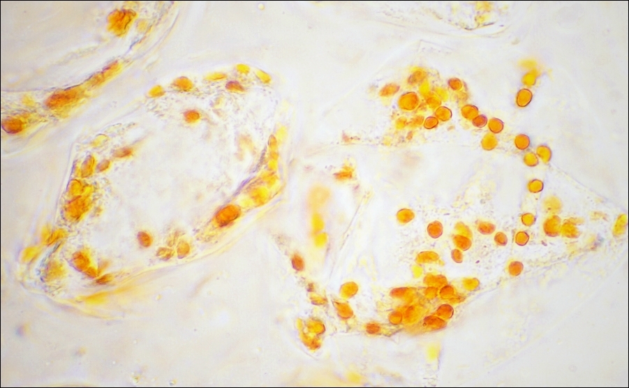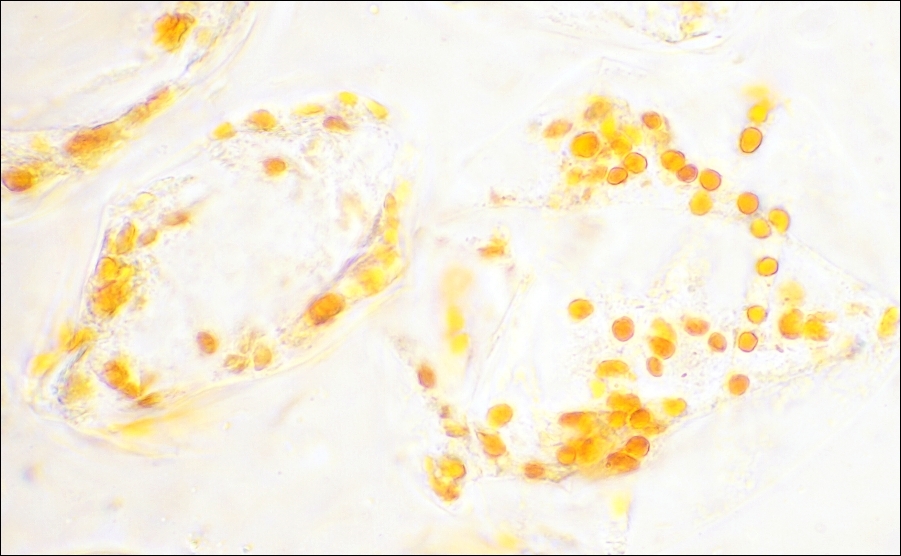 Das sind Chromoplasten des Paprikas bei x-Pol. – ,,ziemlich noch kleiner" und deshalb Undinger für mich.