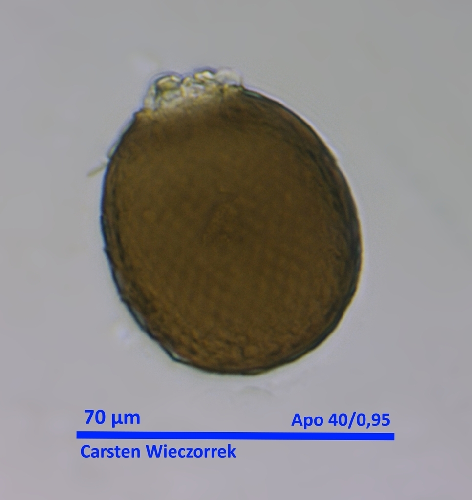 Bild 5 : Samenkorn? Insektenei? Irgend ein Ei? Schalenamöbe? Auch ein Bärtier-Ei?   --> Ei von Macrobiotus richtersii