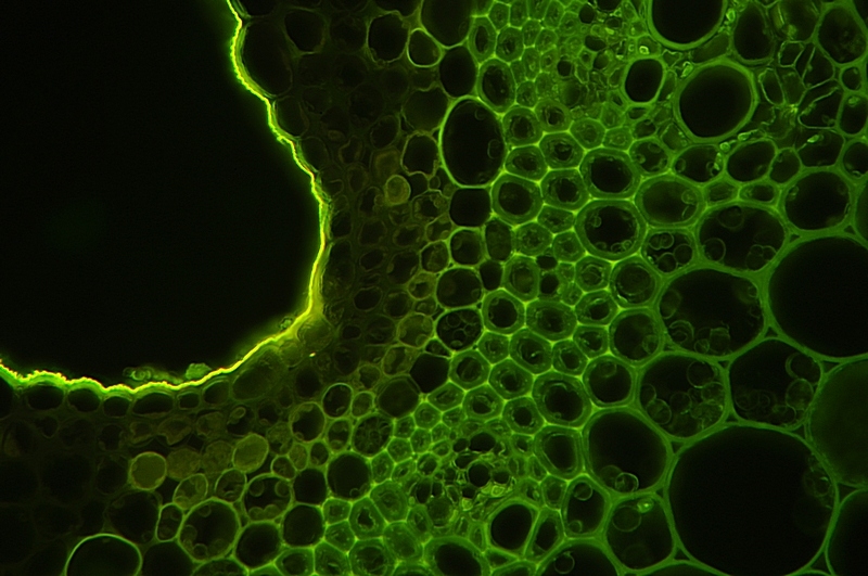 Schöne Aufnahmen hast Du da gemacht ! Vielleicht ein kleiner Tipp zu den Fluoreszenz Bilder: Es würde vielleicht nicht schaden bei den Bildern ein klein wenig unterzubelichten. Dadurch kann man verhindern,dass die verholzten (hier orangenen) Bereiche nicht so die eigentliche Struktur überstrahlen.