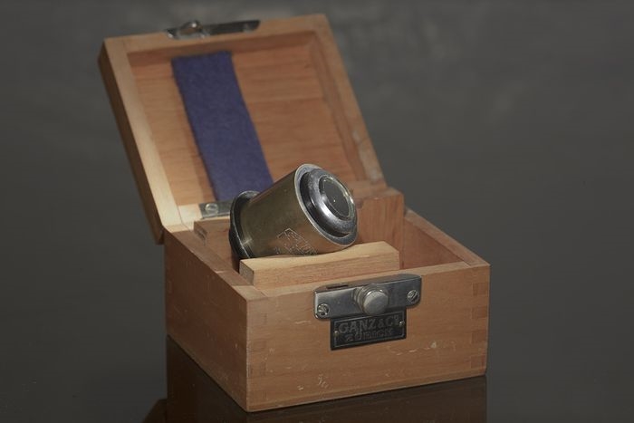 Von unten sieht er aus wie derjenige, den Herr Mappes hier (http://www.museum-optischer-instrumente.de/zeiss_kardioid.html) zeigt. Von den Proportionen entspricht er eher dem dort unter "Fig. 1" (zweites Bild von unten) abgebildeten Schnittbild...