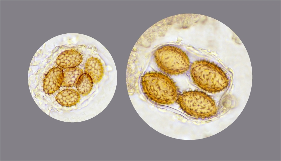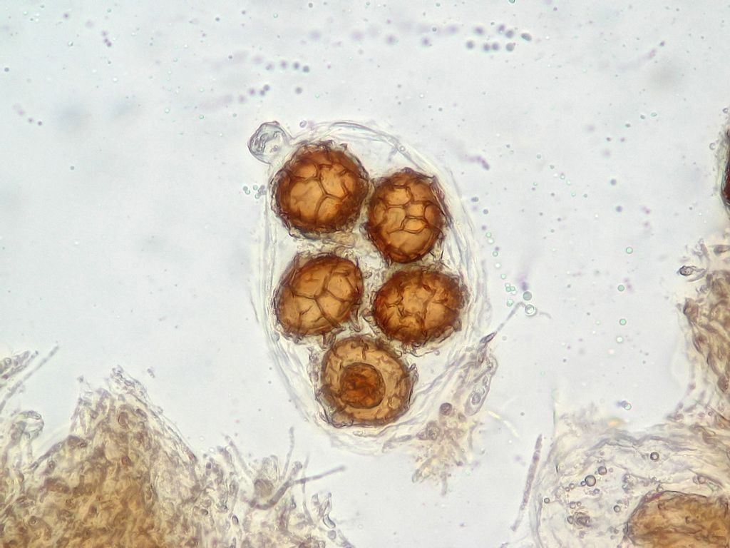 Jörgs Foto zeigt (so wie meines) fünf Sporen im Ascus – T. aestivum (sagt der Amateur).