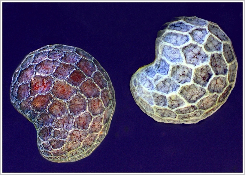 Der Mohnsamen ist immer wieder für Experimente gut. Aufnahme an einem modifizierten Olympus BH-2 mit 35mm Objektiv an Stelle des Objektivrevolvers. Nur 50 Einzelbilder mit einer Canon 450D mit HF verrechnet. Auf- und Durchlicht kombiniert.