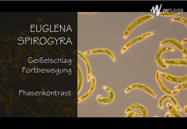 Zum Schluss habe ich noch drei Videos von den Augenflagellaten auf meine homepage gestellt. Im Video mit dem Phasenkontrast ist der Geißelschlag gut zu sehen (trotz massiver Video-Komprimierung, wodurch viele Feinheiten untergehen), im Dunkelfeldvideo ist dieser Geißelschlag nur sehr schwer zu beobachten.