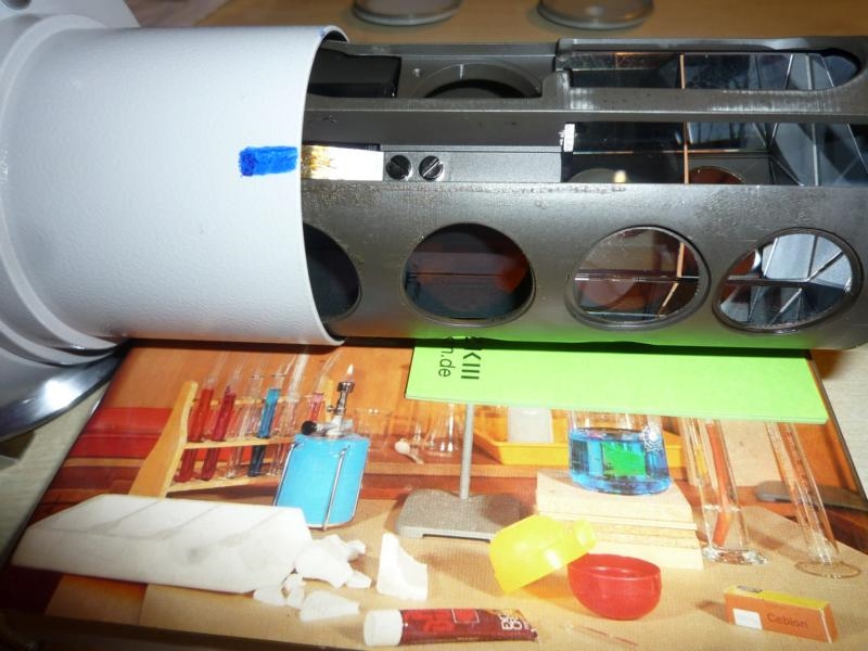 Bei dem anderen Tubuskopf ist leider auch nicht alles so gut gelaufen, wie ich änfänglich berichtet habe. Die Abbildungsleistung zeigt deutliche Mängel, es gibt jetzt eine ausgeprägte chromatische Verzeichnung in einem gossen Bereich des Sehfeldes. Da ist vermutlich etwas mit dem Schieber passiert. Nach meinem Empfinden sitzt der Schieber auch etwas lockerer in seinem Sitz als vorher. Ob das zu dem Problem beiträgt?