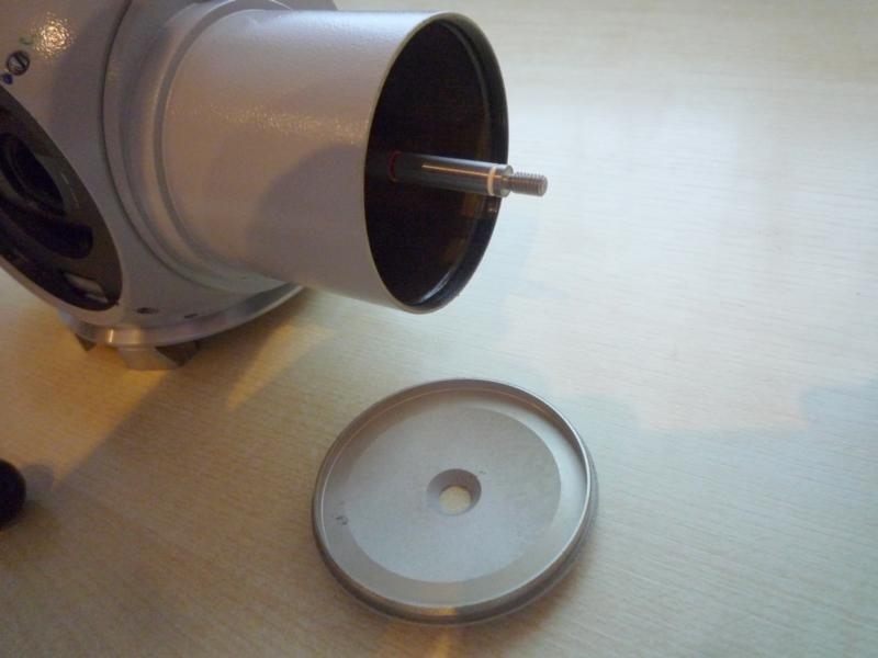Knopf von der Zugstange abdrehen / beide Verschlussdeckel abschrauben (mit der flachen Hand und ohne Ring) / Schieber ganz einfahren / Innenrohr bis zum Schieber reinigen und leicht einfetten / den Tubuskopf rutsch- und wackelfrei auf eine sichere Unterlage legen