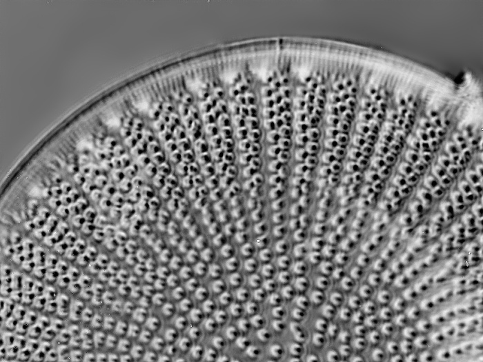 in einer gereinigten Schlammprobe aus Rathenow sind fast 99% nur zentrische Diatomeen zu finden. Diese Lochstickerei hat einen gewissen Reiz, wenn auch nicht einfach zu dokumentieren.