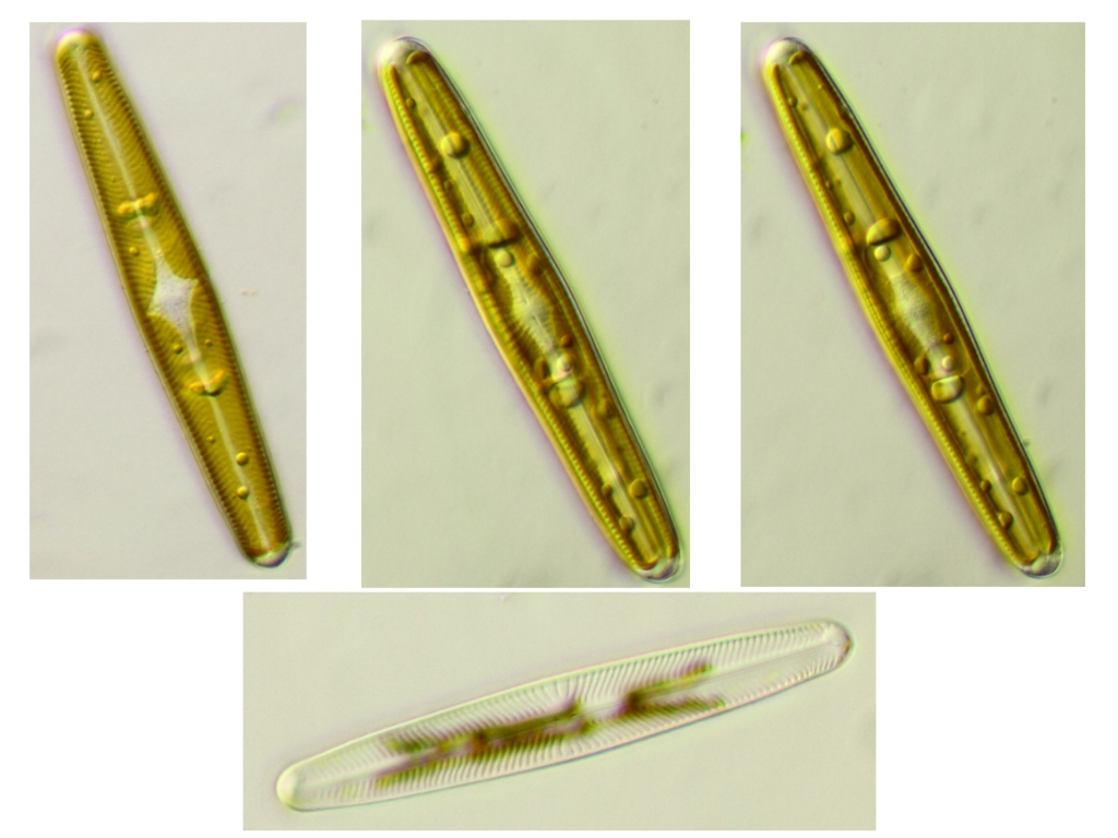 Heute habe ich ein Paar Aufnamen von Pinnularia Navicula oblonga gemacht aus der Graben in unser Gartenpark. Schiefe Beleuchtung, ZW 40er Achromat.