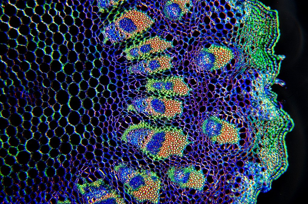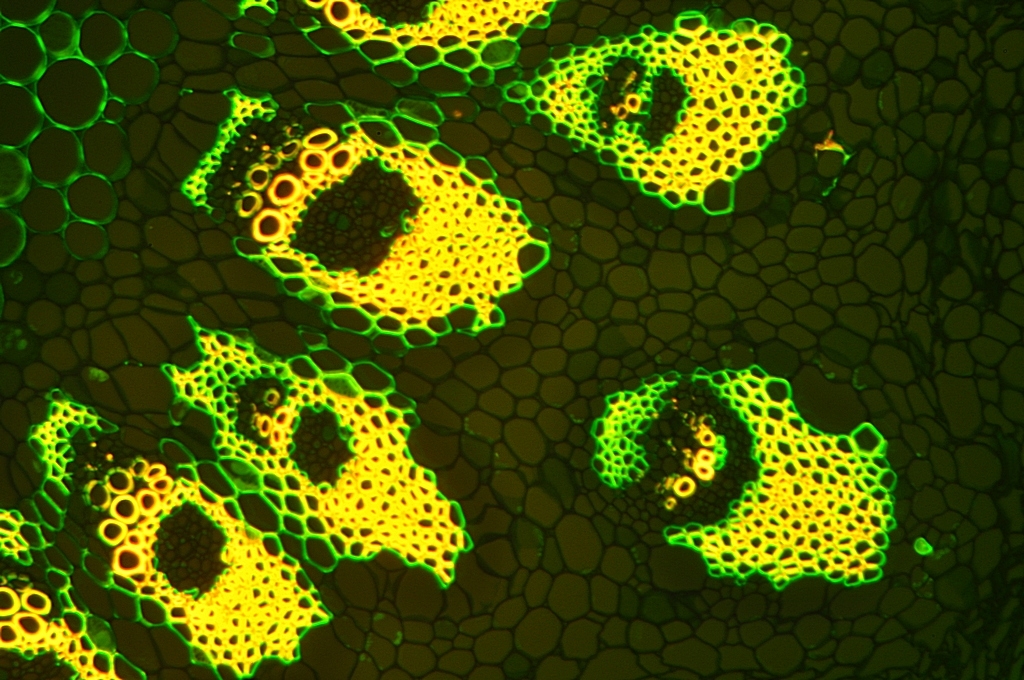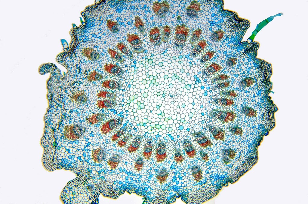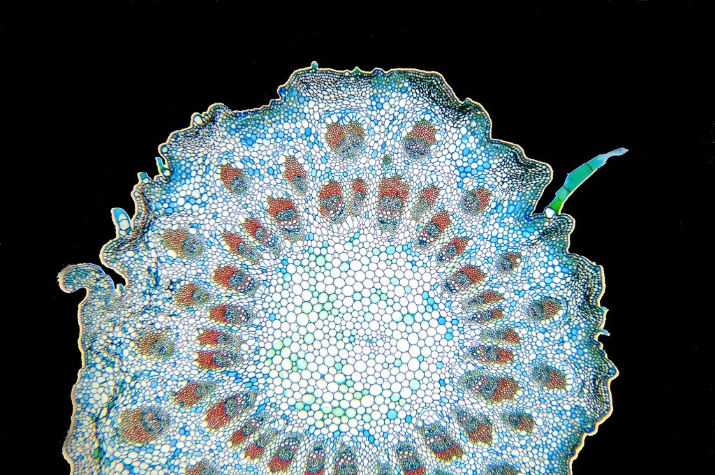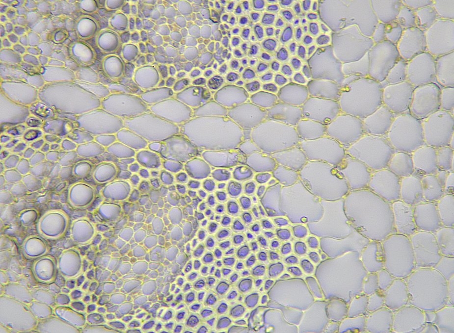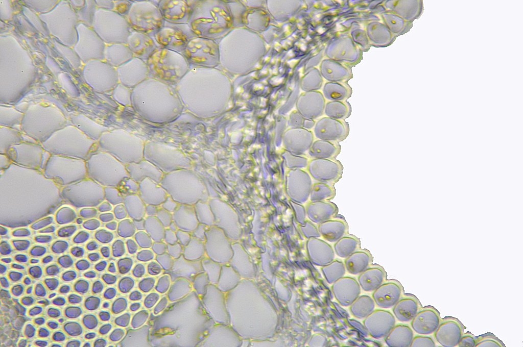 Da die Kraztdistel eine Dicotyle (Zweikeimblättrige Pflanze) ist, müsste es sich hier um ein offenes Leitbündel handeln, aber ich kann kein Kambium entdecken.