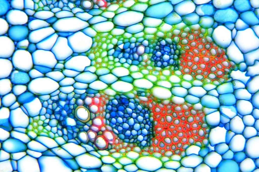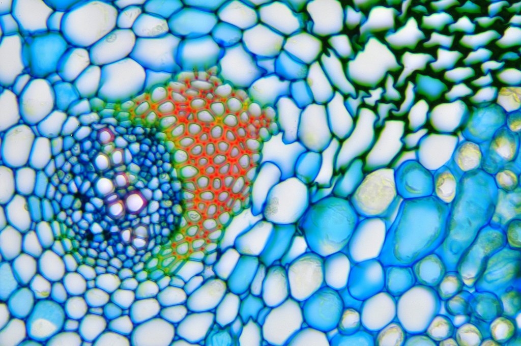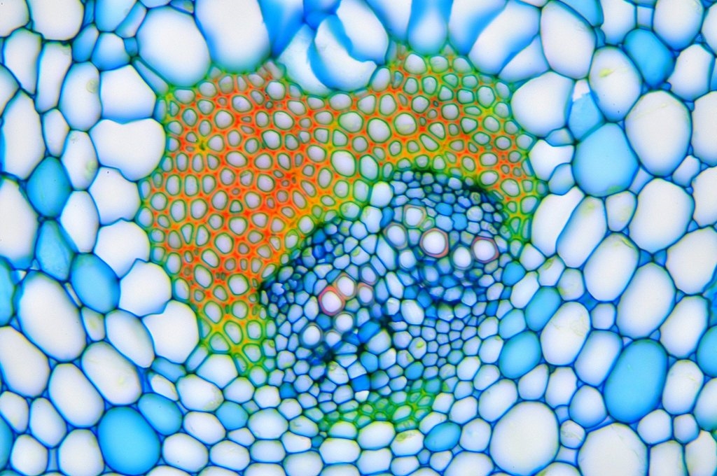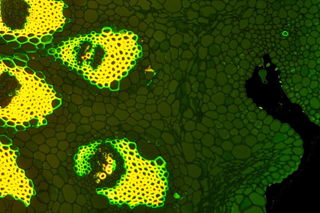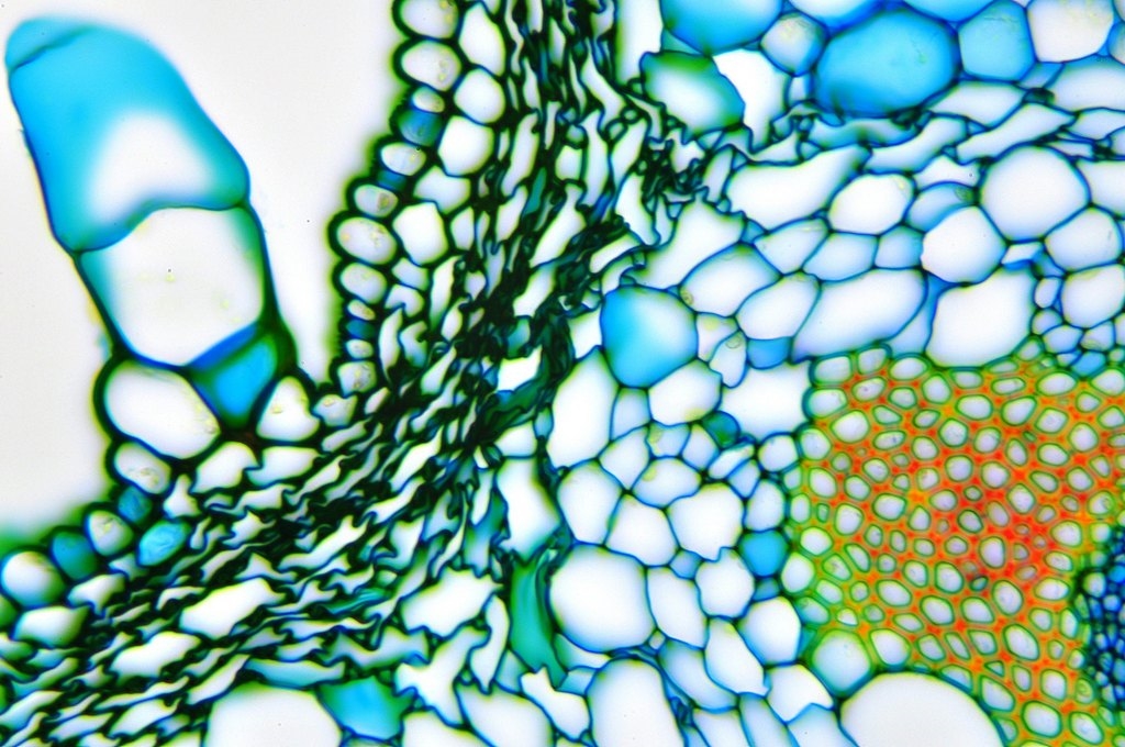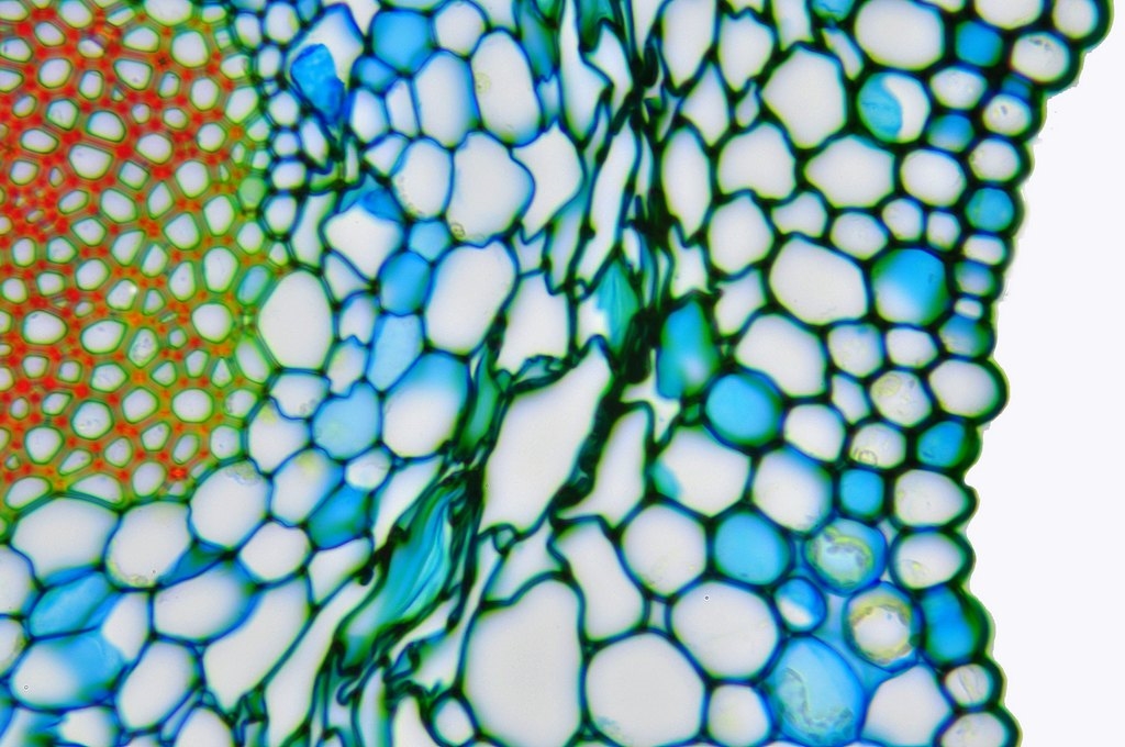 Da die Kraztdistel eine Dicotyle (Zweikeimblättrige Pflanze) ist, müsste es sich hier um ein offenes Leitbündel handeln, aber ich kann kein Kambium entdecken.