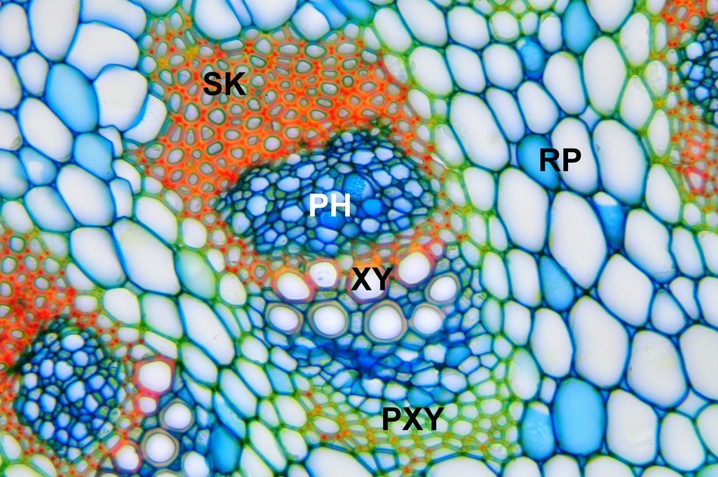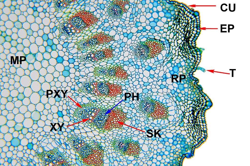 SK = Sklerenchym, PH = Phloem, XY = Xylem, PXY = Protoxylem, RP = Rindenparenchym