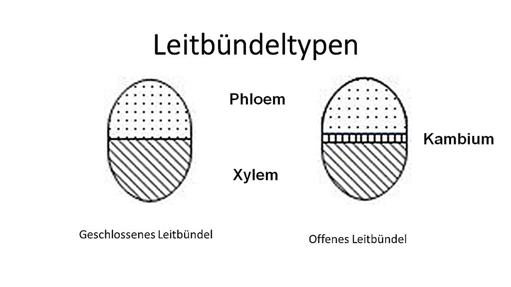 Ist ein Kambrium zwischen Phloem und Xylem, nennt man das Leitbündel ,,offen" (bei vielen Dikotylen) - Zweikeimblättrige Pflanzen.