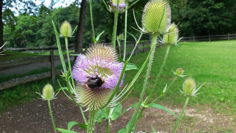 eine schöne Dokumetation diese "Unkrauts". Man sieht sie zur Zeit wirklich oft. Ich habe auf einer Wanderung auf der Schwäbischen Alb vor ein paar Tagen "wunderschöne" Aufnahmen mit einem Schmetterling drauf gemacht. Allerdings kann ich mit dem Handy noch keine guten Nahaufnahmen machen, hab sie alle rausgeworfen. Aber auf der selben Wanderung ist mir wenigstens ein Bild der Kardendistel mit Hummel gelungen. Im Herbst stehen sie braun vertrocknet. Interessant ist die Verwendung der trockenen Fruchtstände in früheren Zeiten von den Tuchmachern, Webern und Färbern zum Aufrauhen von Geweben: https://de.wikipedia.org/wiki/Weber-Karde