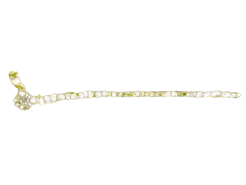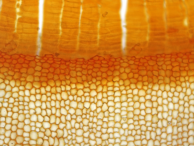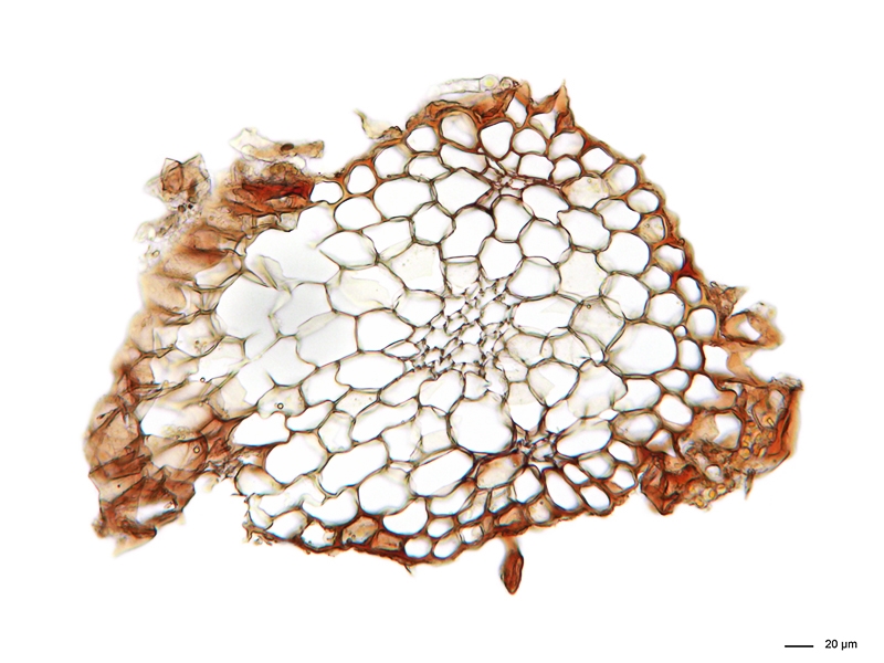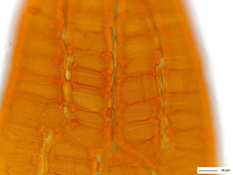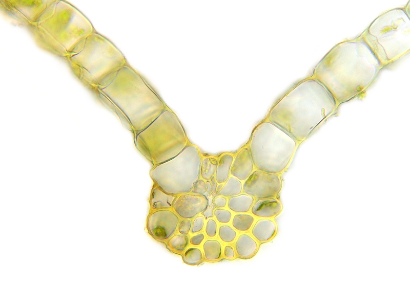 Blattqerschnitt oberhalb der Blattmitte, die Lamina ist einzellschichtig und glatt