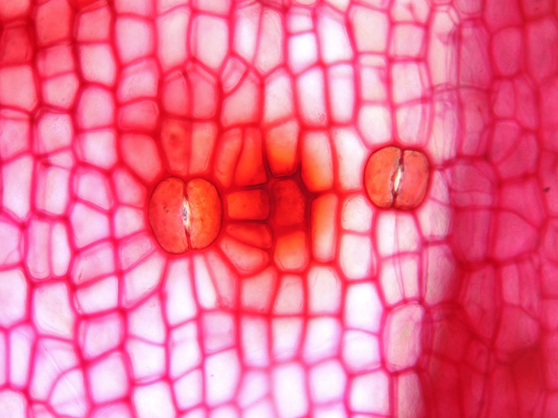 Die Stomata liegen im unteren Teil der Kapsel. Dieser ist purpurrot gefärbt.