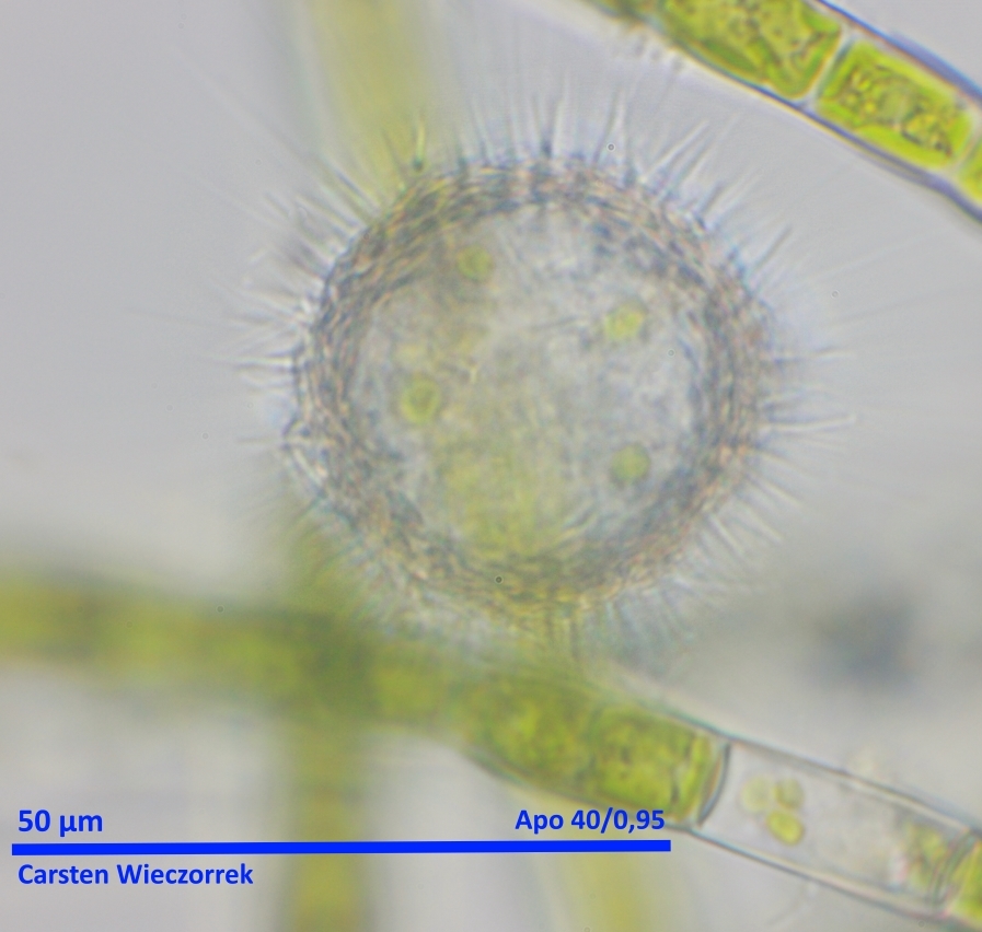 Das ist eine leere Hülle, aber ein richtiges Sonnentier, Choanocystis aculeata.