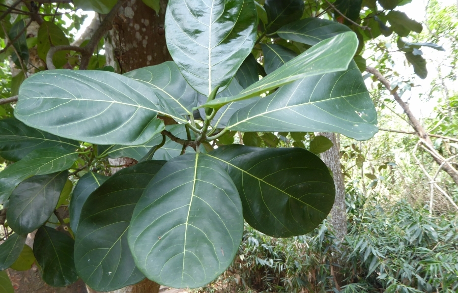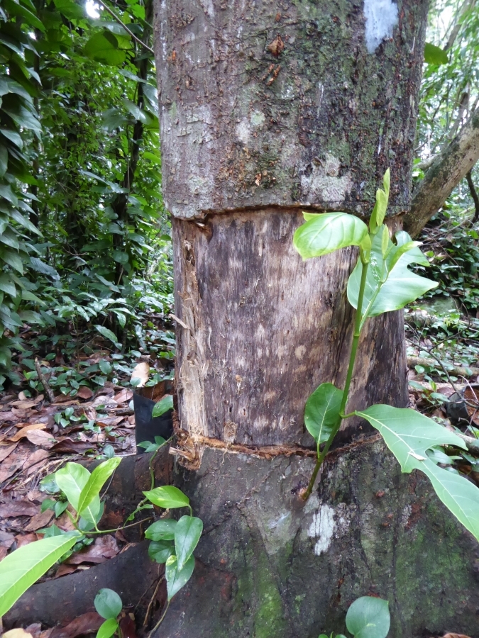 Bild 1 zeigt einen Jackfruchtbaum Baum, Bild 2 die Blätter im Detail. Eine Frucht ist in Bild 3 zu sehen. Ich habe auch mal die Neophyten-Infotafel abfotographiert, die in Bild 4 zu sehen ist. Bild 5 zeigt einen geschälten Jackfrucht-Baum.