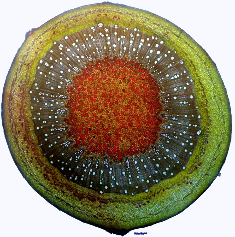 Die Aufnahmen wurden mit CZJ Apochromaten und dem Projektiv PK 2,5 mit meiner Samsung aufgenommen. Das Übersichtsbild und die Übersichts-Fluoreszenzaufnahme sind gestitched aus 32 Kacheln. Jede Kachel ist in voller Kameraauflösung und besteht aus 10 bis 20 Einzelaufnahmen, die mit PICOLAY gestackt wurden. Die gestackten Bilder wurden mit Helicon Filter optimiert (geputz, weißabgleich). Zum Stitchen habe ich Image Composit Editor im automatik-Modus verwendet.