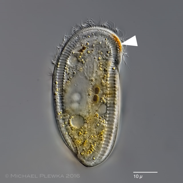 Im vorderen Teil der Zelle befinden sich eine Menge kleiner lichtbrechender Körnchen. Das Viech bewegt sich extrem schnell vorwärts und rückwärts, kann aber den ,,Hals" nicht in der Länge variieren, so wie es bei L. olor der Fall ist.