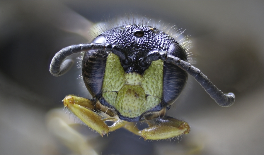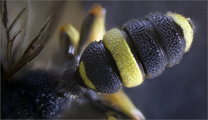 ... lautet ein klangvoller deutscher Name für Cerceris rybyensis, einem Vertreter der Grabwespen. Das abgebildete Tier verirrte sich irgendwann im Sommer auf die Fensterbank und wurde dort tot aufgefunden.