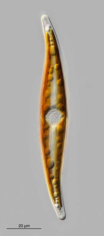 ich dachte es ist nach den zuletzt gezeigten fantastischen Fotos von toten Kieselalgen an der Zeit, auch mal wieder ein Bild einer lebenden Kieselalge einzustellen. Deshalb hier ein Foto einer Gyrosigma sp.