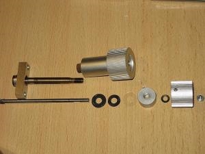 Der untere Verstellknopf (2. T. v. r.) wird nach lösen der Made leicht gegen die kleine Tellerfeder (3. T. v. r.) gedrückt und die Made wieder befestigt.