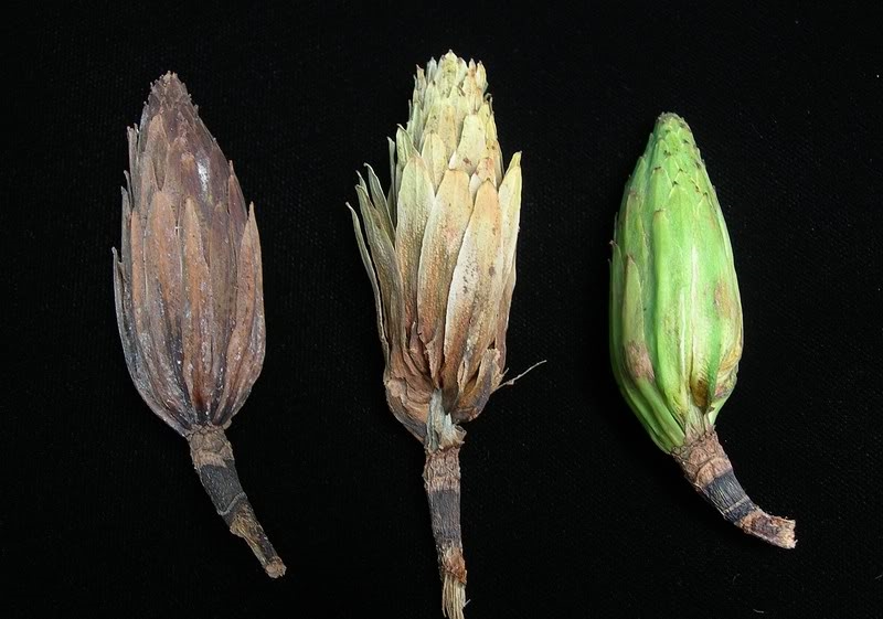 das ist ein lustiger Zufall. Ich fand in den vergangenen Tagen bei uns im Warmen Damm Park abgesägte Äste des Tulpenbaums und habe einige der Fruchtstände mitgenommen. Hier drei verschiedene Reifestadien: