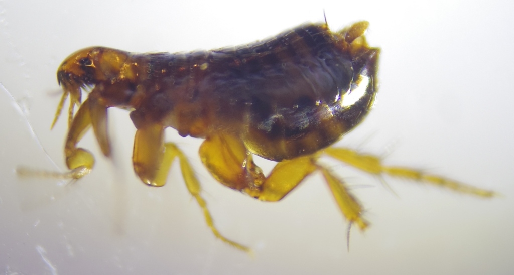 Kann jemand anhand des Fotos die Art grob bestimmen? Ist es ein Kaninchen-, Katzen- oder Menschenfloh?
