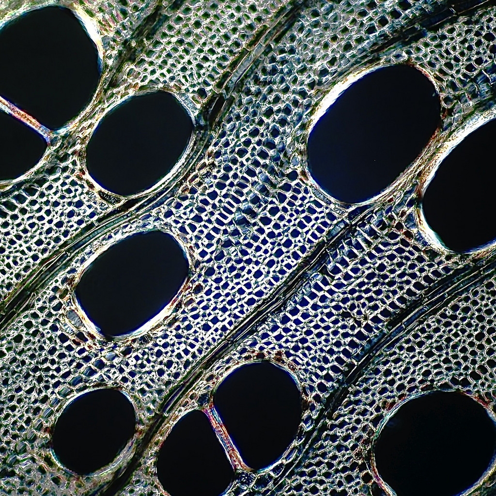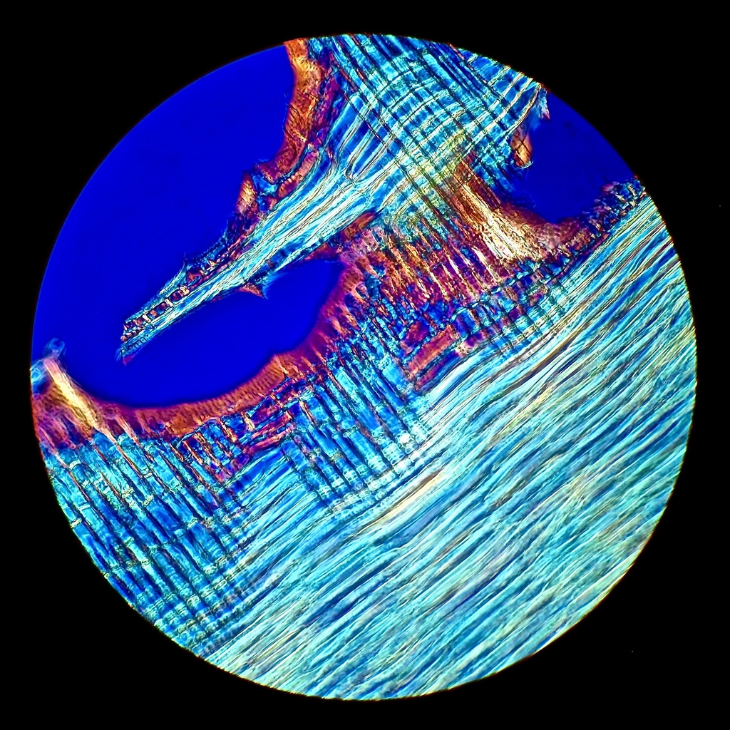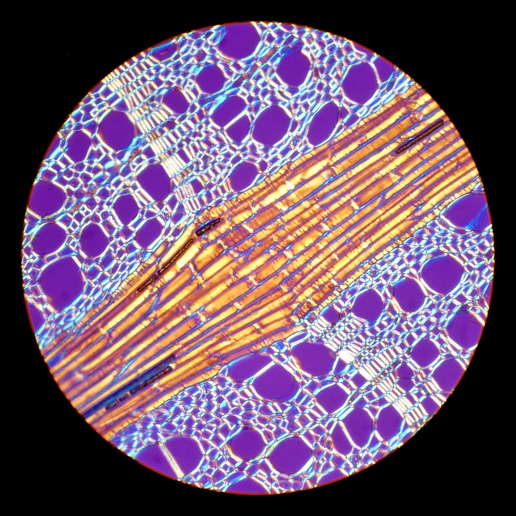 Polarisierter Phasenkontrast bei Kristallen, Holz-u. Pflanzenschnitten