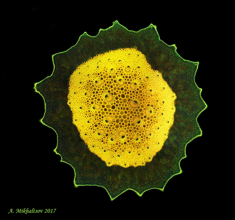 sehr schöne Schnitte, und auch nicht zu grell gefärbt. Welchen Teil der Pflanze hast du denn geschnitten? Wenn es die Phyllocladien gewesen sein sollten, dann sollten die ja eigentlich flach sein. Oder hast du sie ganz unten nahe der Basis geschnitten? Oder den Stengel/Stängel? Hast du das Material irgendwie zum Schneiden aufgeweicht?