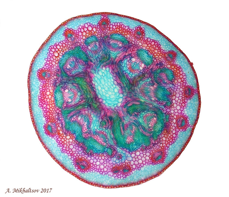 Ich bin aber ein wenig verwirrt: Hordeum, also Gerste ist ja eine Monokotyledone und ich hätte im Halm einen Röhre als Querschnitt erwartet, etwa so wie hie rim Französischen Forum:
