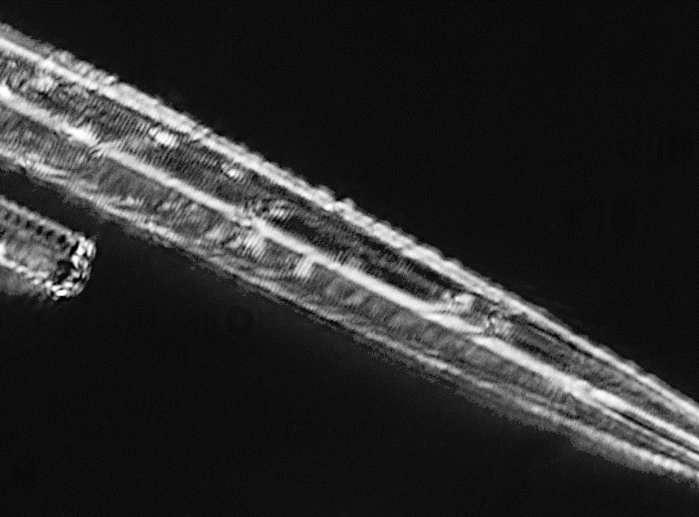 Erstes Bild, wo Streifung sichtbar wird (unten) Eingedeckt in Naphrax