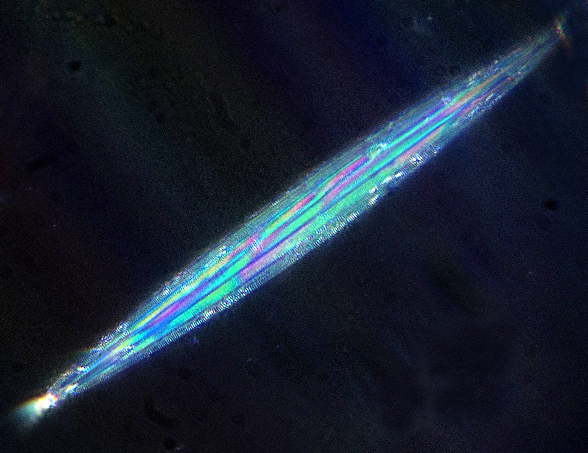 //Aufnahme mit gewöhnlichem 100er 1,25 Achromat - die bunte Fahne verrät den wild dezentrierten //Beleuchtungsstrahlengang...