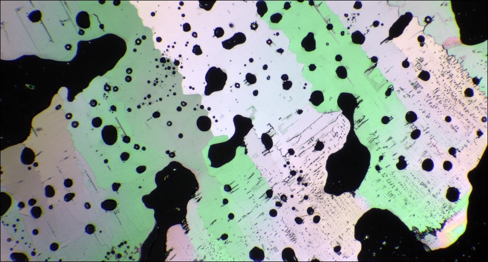 Die Kristalle an sich erweckten erst einmal nicht den Verdacht, zur ,,Dickleibigkeit" zu neigen oder sonstige ,,Absunderlichkeiten" parat zu halten. Auch sind sie tatsächlich dünn zu bekommen, habe aber bei meinen bisherigen Schmelzen nie so stark nachhelfen müssen. Schon der Schmelztropfen hebt ja das Deckglas an und auch Lösungstropfen zeigen Lotoseffekte.