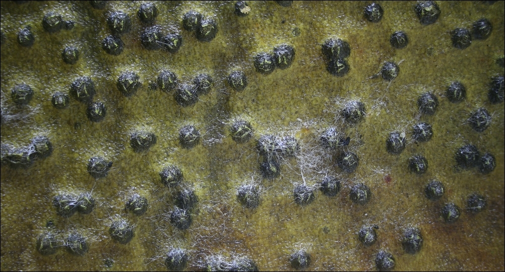 Offenbar waren etliche Pyknidien vollreif, denn durch das Einweichen eines Mistelblatts wurden Unmengen der der großen Konidien freigesetzt, die zu keimen begannen.