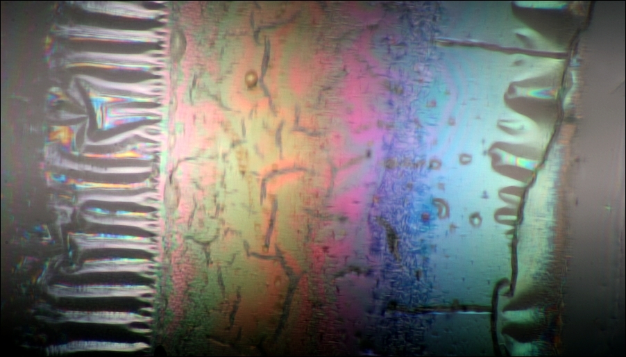 Nicht ganz ohne Mühe war dann immerhin doch ein Metallspiegel zu erhalten, fotografiert im Auflicht durch das Glas eines Röhrchens: