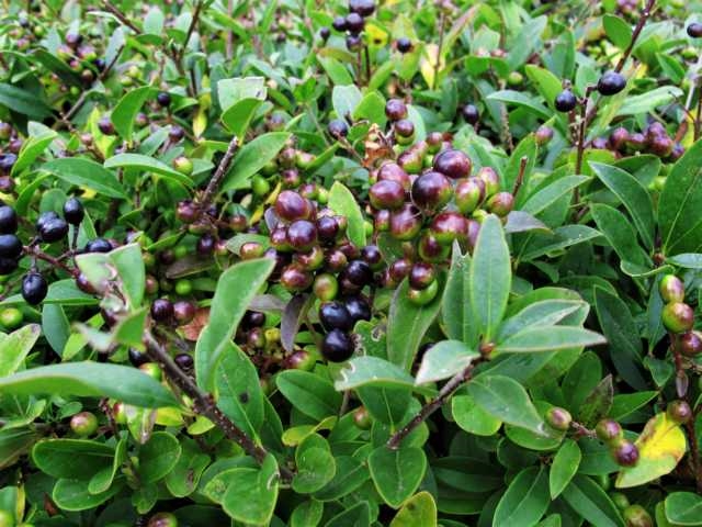Ligustrum ovalifolium ist eine der asiatischen Arten, die wohl bei uns auch als Ziergehölze angeboten werden; sie stammt aus Korea, hat wintergrüne Blätter, die etwas länger sind als die der einheimischen Art Ligustrum vulgare.