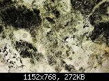 Nun funktioniert wieder alles an meinem PC, aber ich verzichte auf die größeren Bilder. Aus den Briefmarken gewinne ich den Eindruck, dass es sich um einen Serpentinit handeln könnte. Bei der Umwandlung der primären Olivine zum Serpentin wir Magnetit (schwarz, opak) gebildet, der in Schnüren und Bändern den Serpentin durchsetzt. Auch die Grünfärbung der transparenten Kritalle spricht für Serpentin.