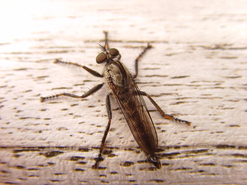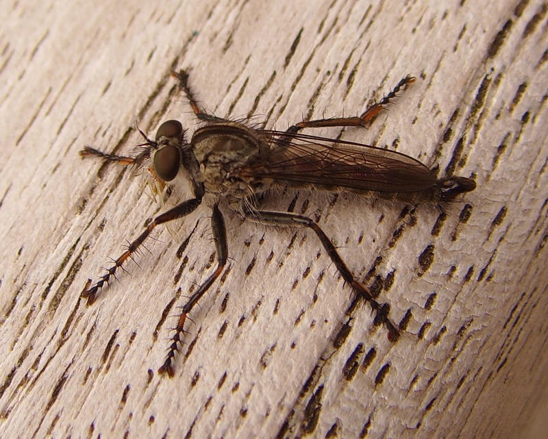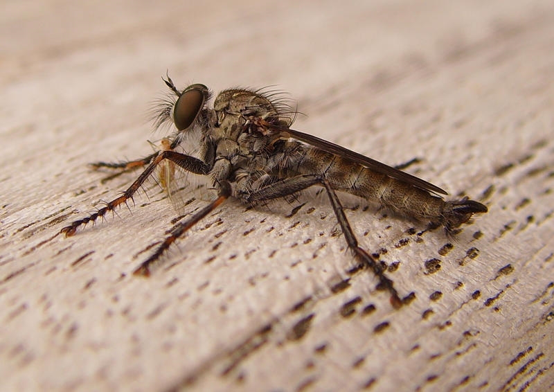 Ich vermute, dass es sich bei diesem Exemplar um eine Raubfliege handelt, evt. aus der Gruppe der Asilidae? Kann das vielleicht jemand bestätigen/widerlegen oder gar eine korrekte Zuordnung machen? Leider gehen meine Kenntnisse in Bezug auf Insekten aber nicht wesentlich über Schulwissen hinaus.