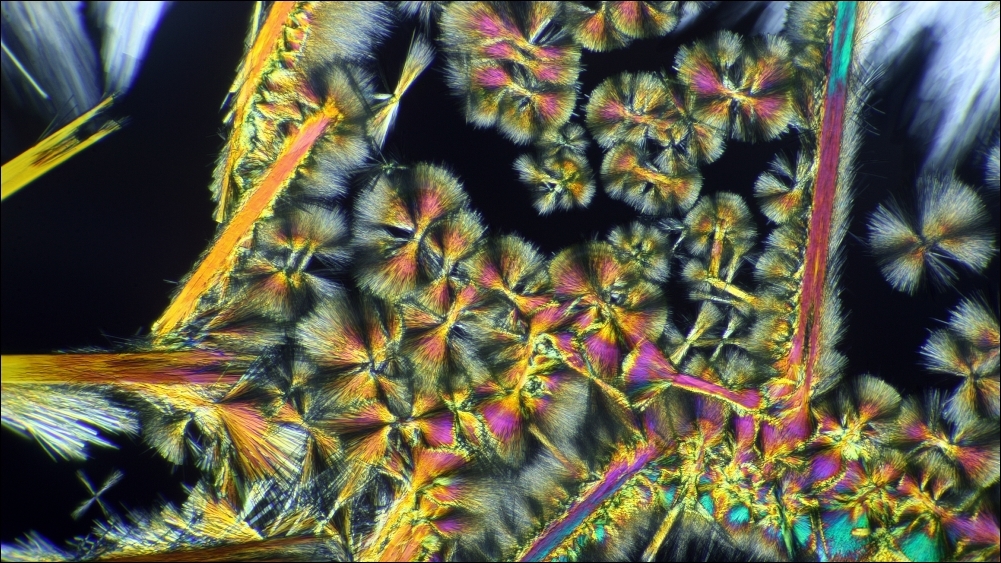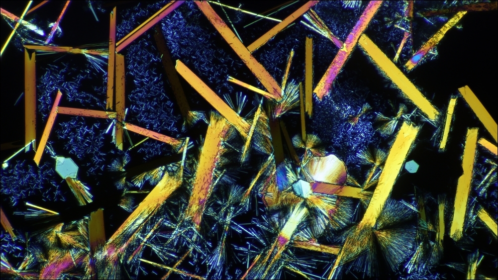 Verzichtet man (anders als in der Literatur angegeben) auf das Erwärmen der zusammengegebenen Lösungstropfen des Kupfersulfats und des Natriumthiosulfats, erfolgt die Kristallisation zwar verzögert und recht langsam under'm Deckglas, dafür aber weitgehend ohne mikrokristallin-trübendes Kupfersulfid.