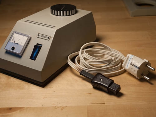 Der Trafo selbst, unspektakulär, erinnert mich an einen Modelleisenbahntrafo...