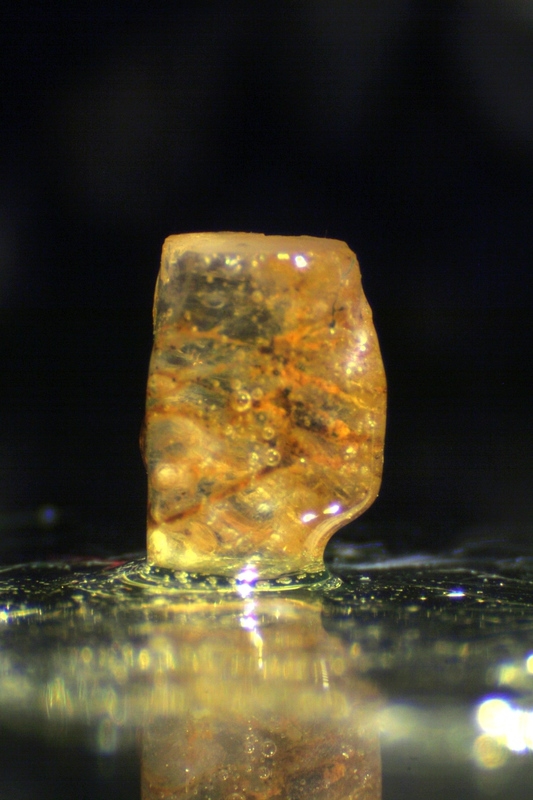 - Es handelt sich bei meinem Vorgehen im Prinzip um nichts anderes, als die in der Mikropaläontologie seit Generationen angewandte Vorgehensweise bei der Herstellung von orientierten Dünnschliffen durch zuvor aus dem Gestein isolierten Mikrofossilien. Nur eben hier auf einen aus dem Gesteinsverband herausgelösten Einkristall.