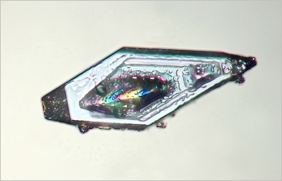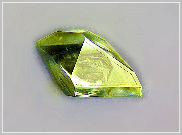 Da sich Schwefel nur gut in der unangenehmen Flüssigkeit CS2 lösen läßt, habe ich nach anderen Lösungsmittel gesucht und Toluol als brauchbar gefunden. Zwar löst sich weit weniger Schwefel und der Dampfdruck ist weit geringer als bei CS2, aber es funktioniert leidlich. Hier ein erstes Kriställchen.
