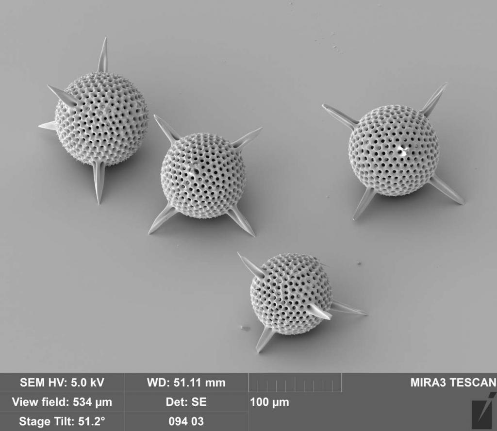 nachdem ich in die Reinigung von Kieselalgen hereingeschnuppert habe und mir nun Unmengen an Barbadosradiolarien vorliegen, möchte ich Euch mal zwecks des esthetischen Ersteindrucks wieder mal mißbrauchen.