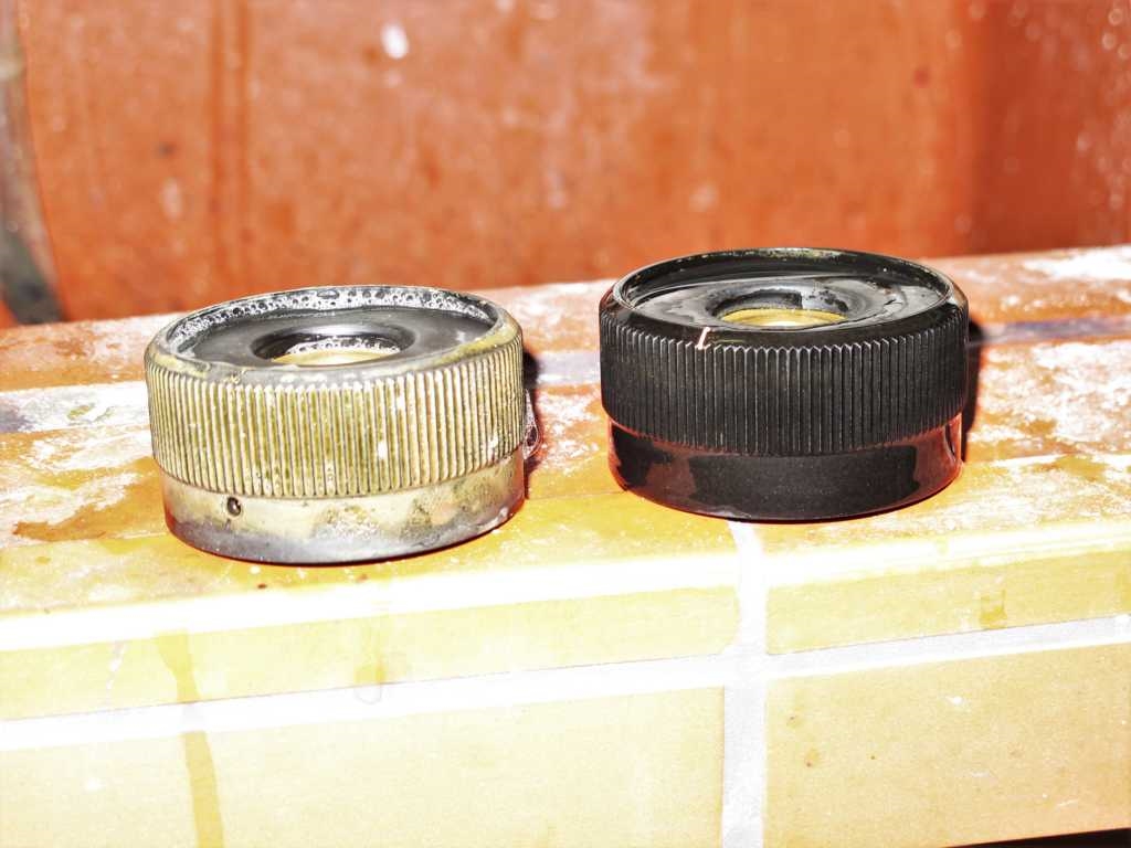 Also runter mit den Dingern und in eine heiße Seifenlauge versenkt. Nach einer Stunde mit einer Handbürste die Rillen längs geschrubbt. Bei mir gings tadellos. Der Unterschied ist auch für Farbenblinde zu erkennen.