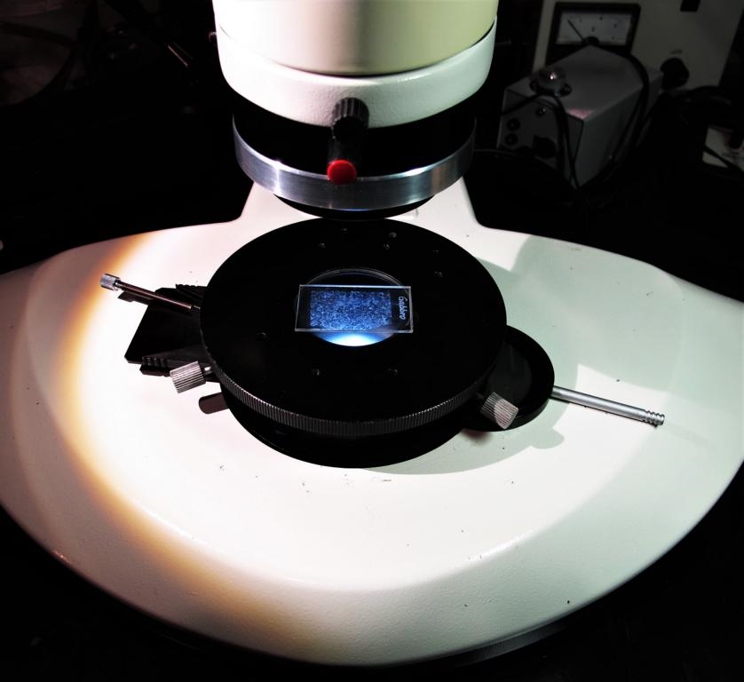 Ich habe für mein Leica Stemi MZ 6 einen älteren Poldrehtisch erworben. Der große original Polarisator war leider heftig delaminiert. Durch kräftiges Erwärmen konnte er aufgeschraubt werden . Er war zusätzlich verklebt - vielleicht Canadabalsam. Die Polfolie war hinüber, leider war das eine Glas des Sandwiches trübe, so dass ich mir ein neues zuschleifen musste. Geduld und eine gute Tellerschleifmaschine haben es ermöglicht. Polfolie habe ich in guter Qualität von Olaf bekommen, die habe ich auch durch schleifen eingepasst - geht schneller, als das Glas! ;) Verschraubt und mit Canadabalsam fixiert: wie neu!