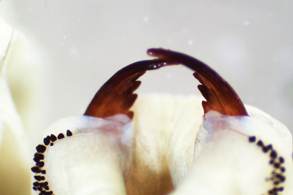 ja, das Ausbleichen der Farbe kommt vom Schnaps, in dem das Vieh badet. Ansonsten hatte ich vor ein paar Wochen schon mal schönere Bilder davon gemacht, die entsprechende Speicherkarte aber gestern Abend nicht wiedergefunden, so dass ich alles auf die Schnelle erneut fotografieren musste. Aber Hauptsache, man erkennt die morphologischen Strukturen.