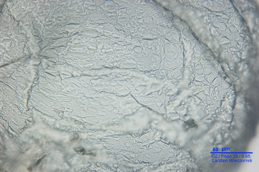 was habe ich den hier gefunden? Auf den ersten Blick ähnelt das ja Pollen, aber irgendwie zweifele ich daran. Es gibt auch keinerlei sichtbare Effekte mit polarisiertem Licht.