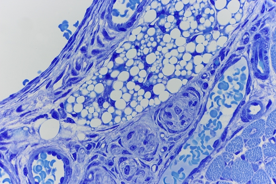 Weiter sieht man Muskulatur und zwei Mastzellen.