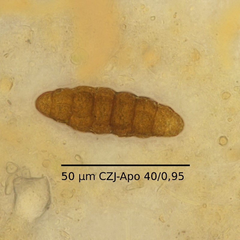 ich glaube auch das es eine Pilzspore ist und würde sogar sagen das eventuell in Richtung Pyrenomycet geht.