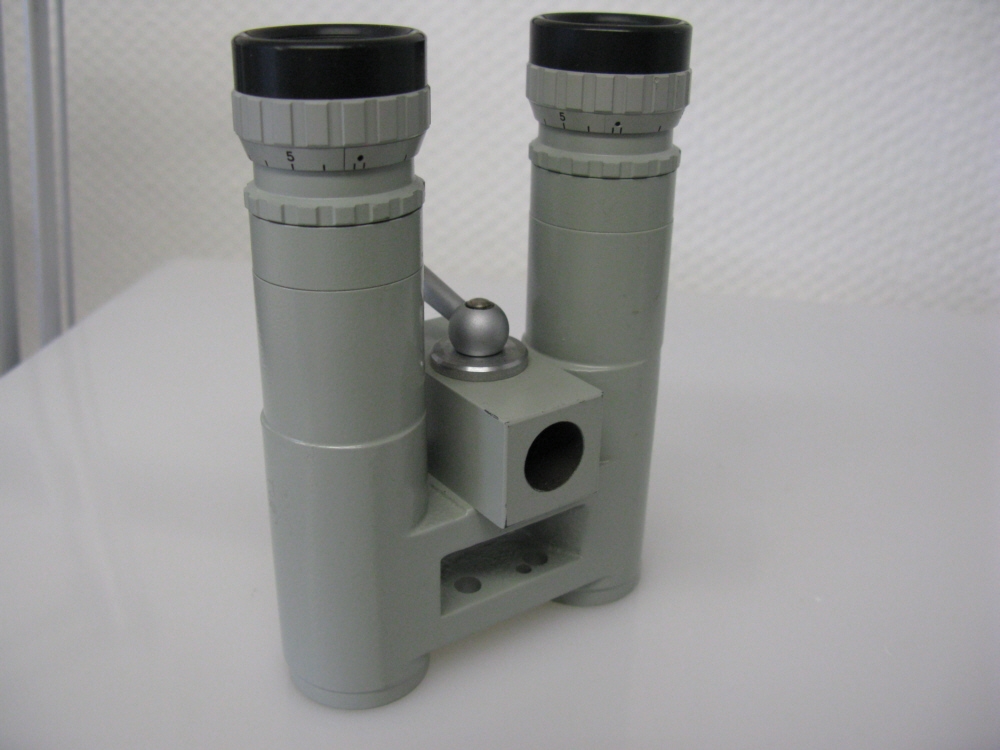 Hersteller vermutlich Zeiss/J , der Augenabstand ist nicht einstellbar, die optimale Schärfe (ebenfalls nicht einstellbar) liegt bei ca. 20m. Das Gerät verfügt über eine Bohrung mit Klemmhebel.